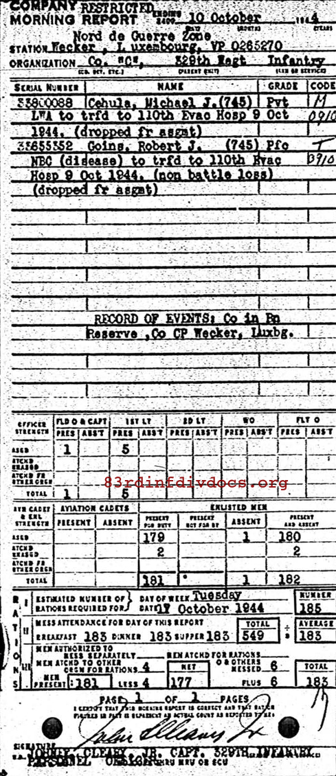 Co in Bn Reserve, Co CP Wecker, Luxbg.
