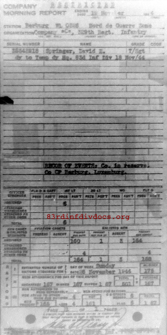 Morning report C/329 for November 19, 1944
