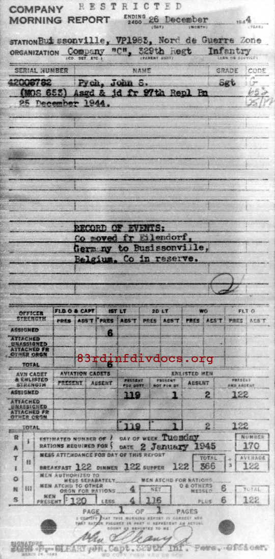 Co moved fr Eilendorf, Germany to Buissonville, Belgium. Co in reserve.