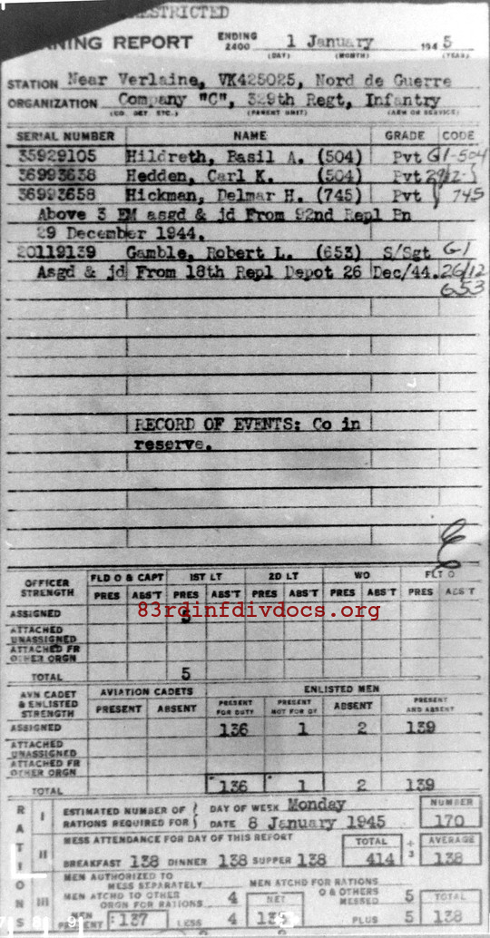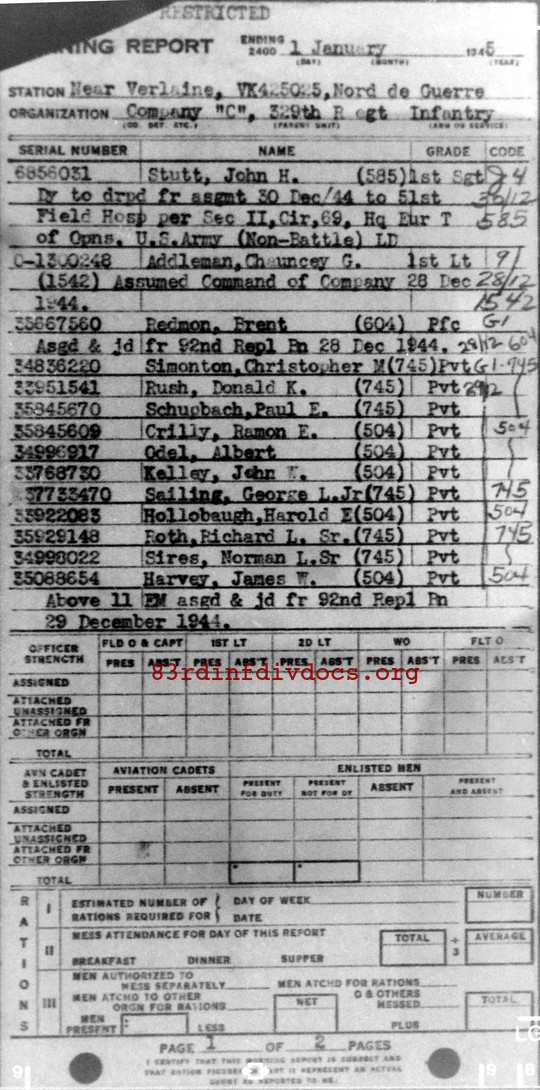 Morning report C/329 for January 1, 1945