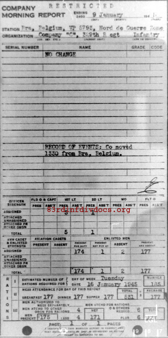 Morning report C/329 for January 9, 1945