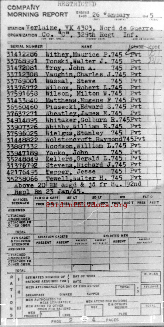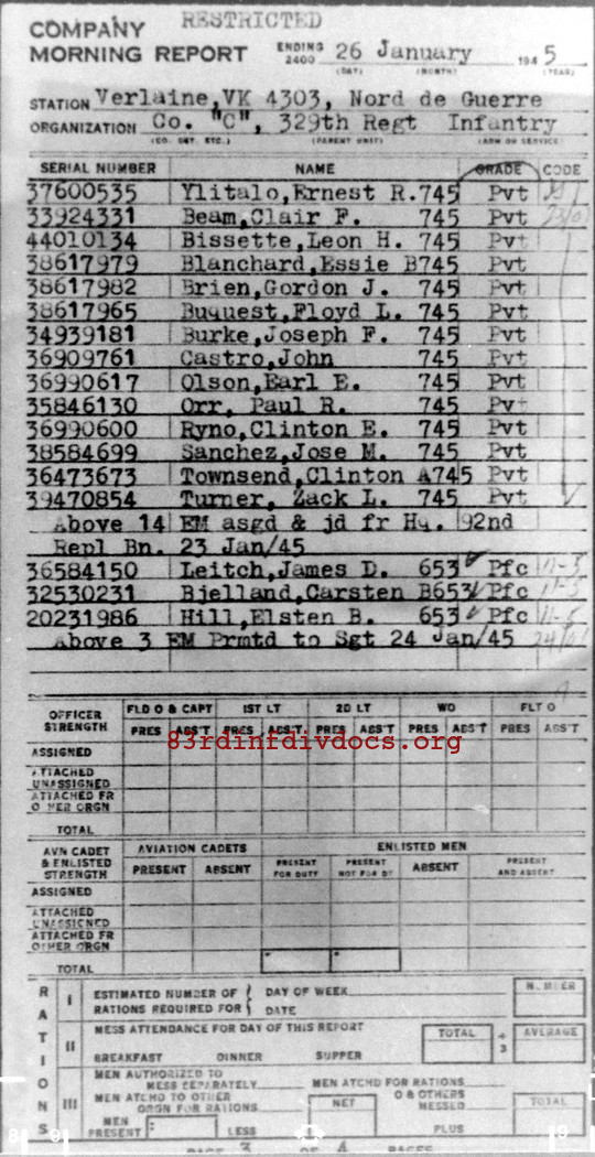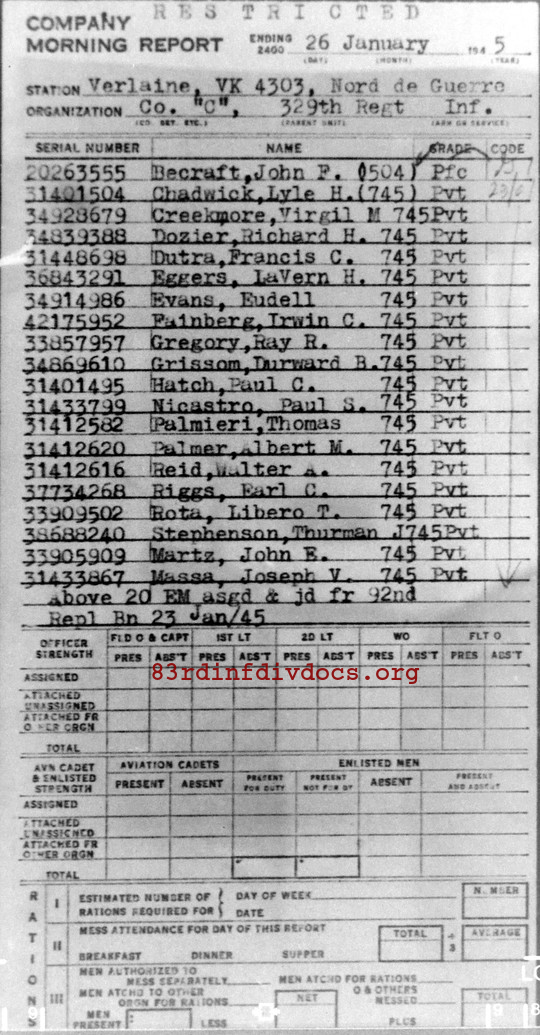 Morning report C/329 for January 26, 1945