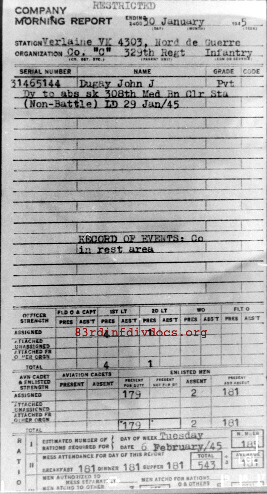 Morning report C/329 for January 30, 1945