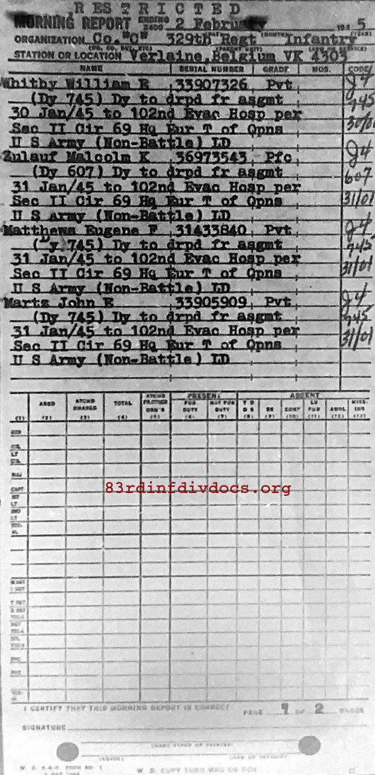 Morning report C/329 for February 2, 1945