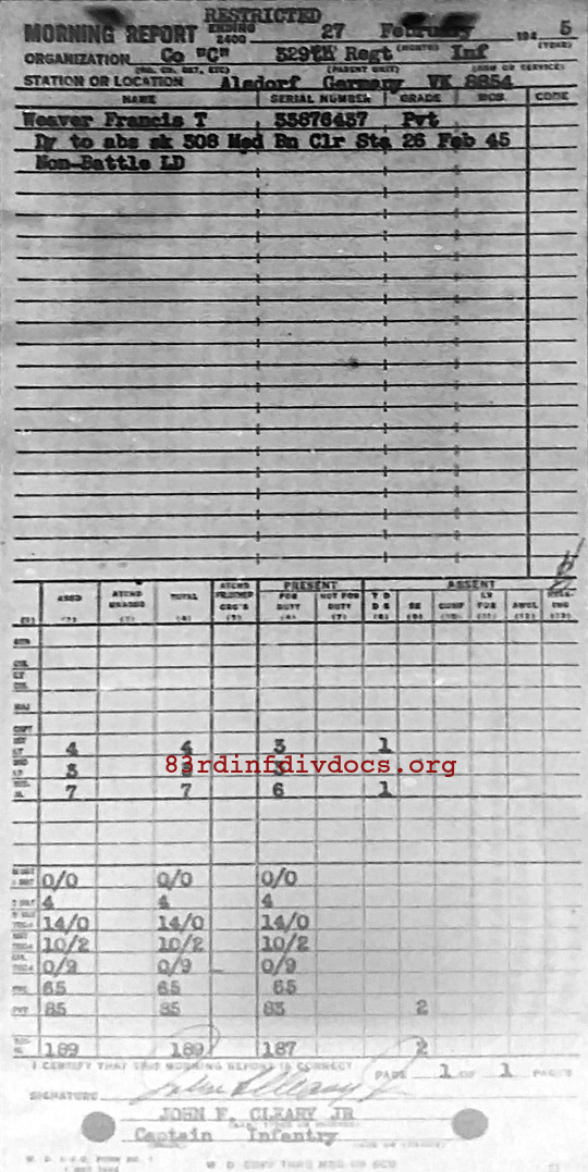 Morning report C/329 for February 27, 1945