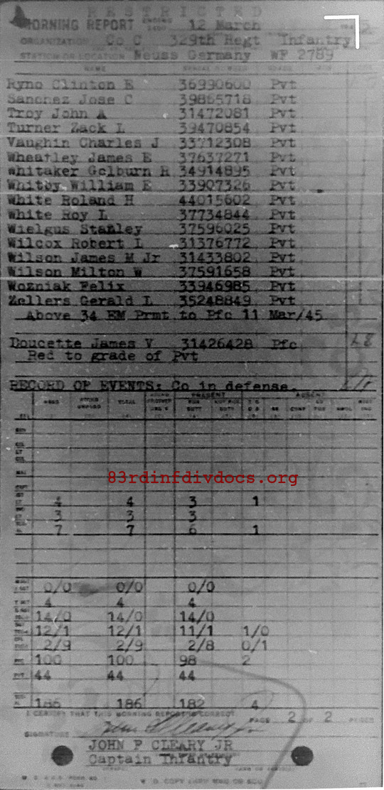 Morning report C/329 for March 12, 1945