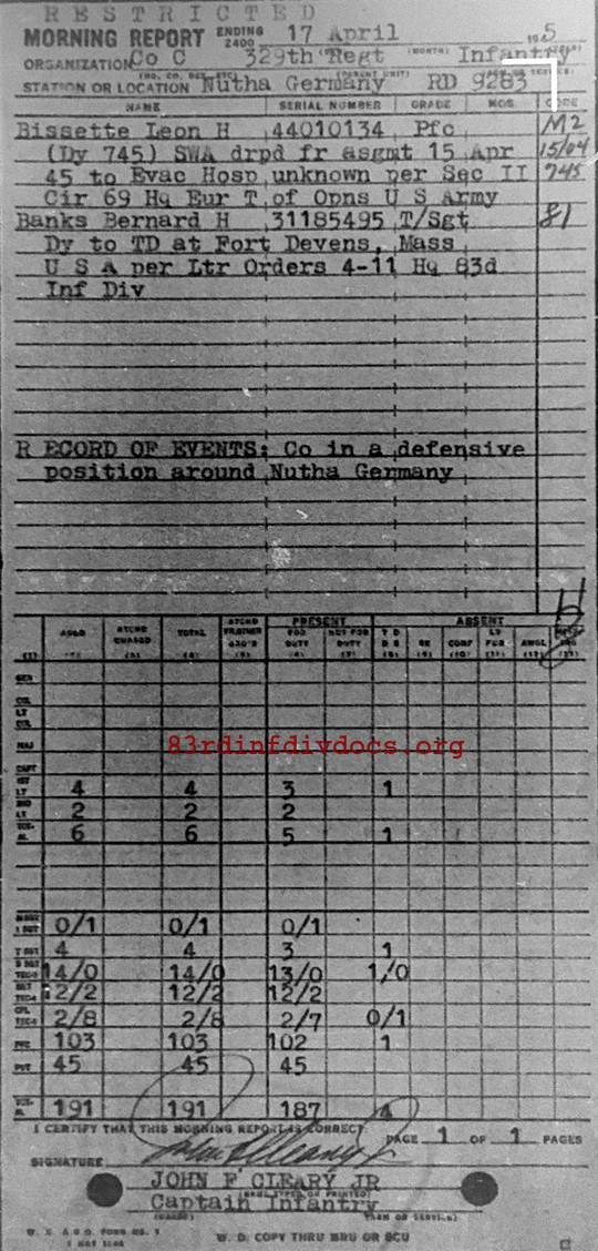 Morning report C/329 for April 17, 1945