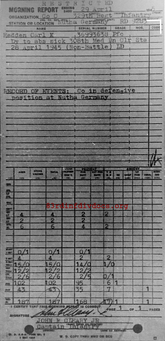 Morning report C/329 for April 29, 1945