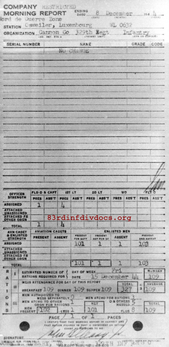 Morning report CANCO/329 for December 8, 1944