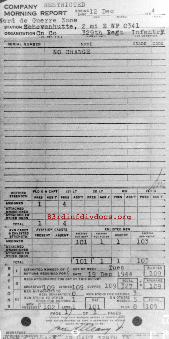 Morning report CANCO/329 for December 12, 1944