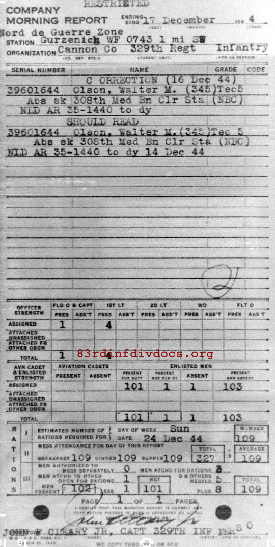 Morning report CANCO/329 for December 17, 1944