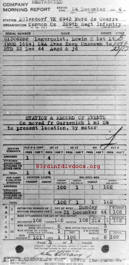 Morning report CANCO/329 for December 24, 1944
