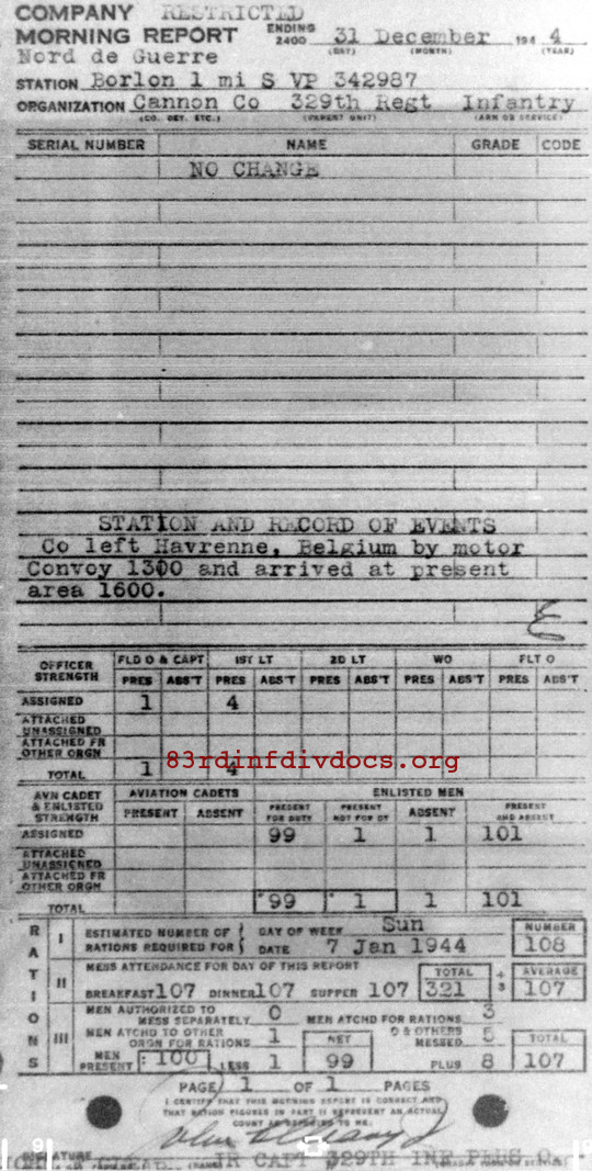 Morning report CANCO/329 for December 31, 1944
