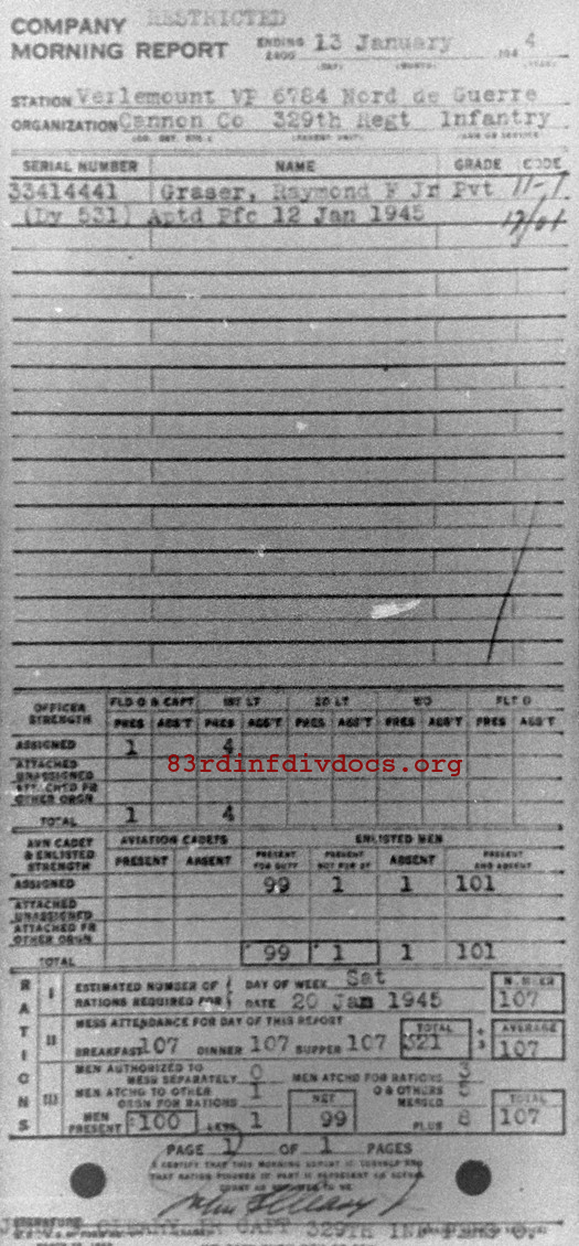 Morning report CANCO/329 for January 13, 1945