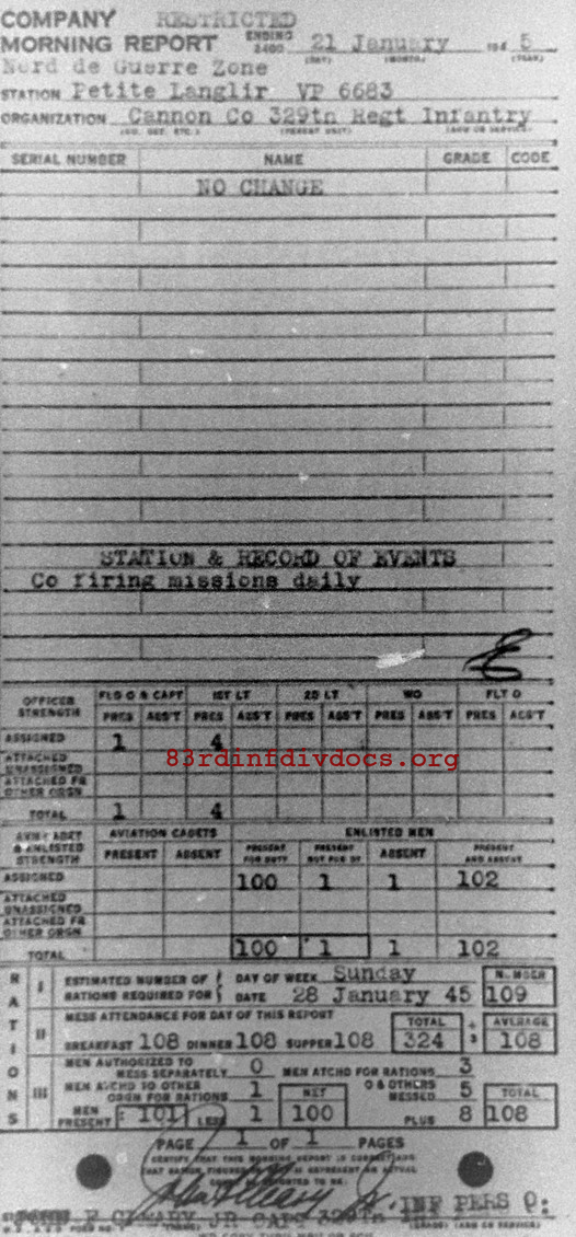 Morning report CANCO/329 for January 21, 1945