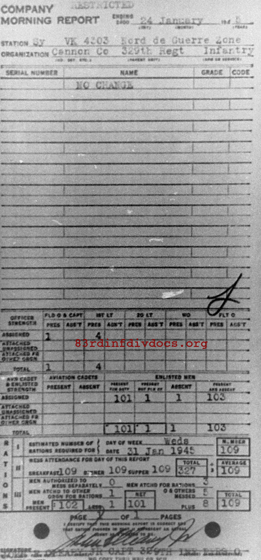 Morning report CANCO/329 for January 24, 1945