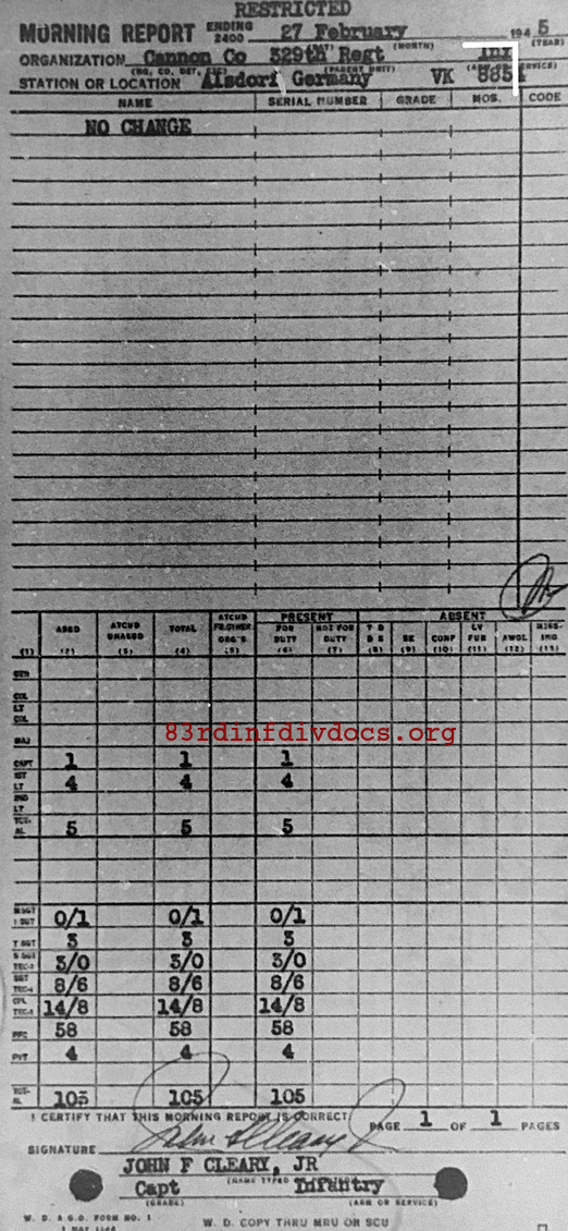 Morning report CANCO/329 for February 27, 1945
