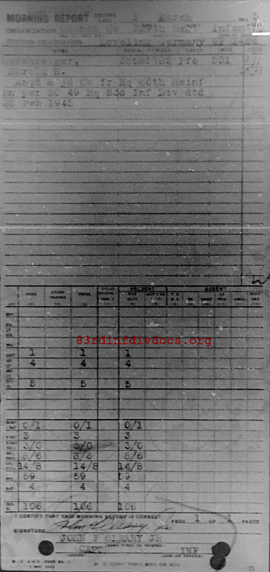 Morning report CANCO/329 for March 1, 1945