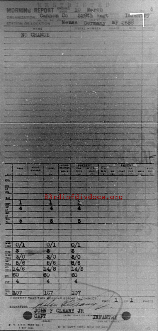 Morning report CANCO/329 for March 10, 1945