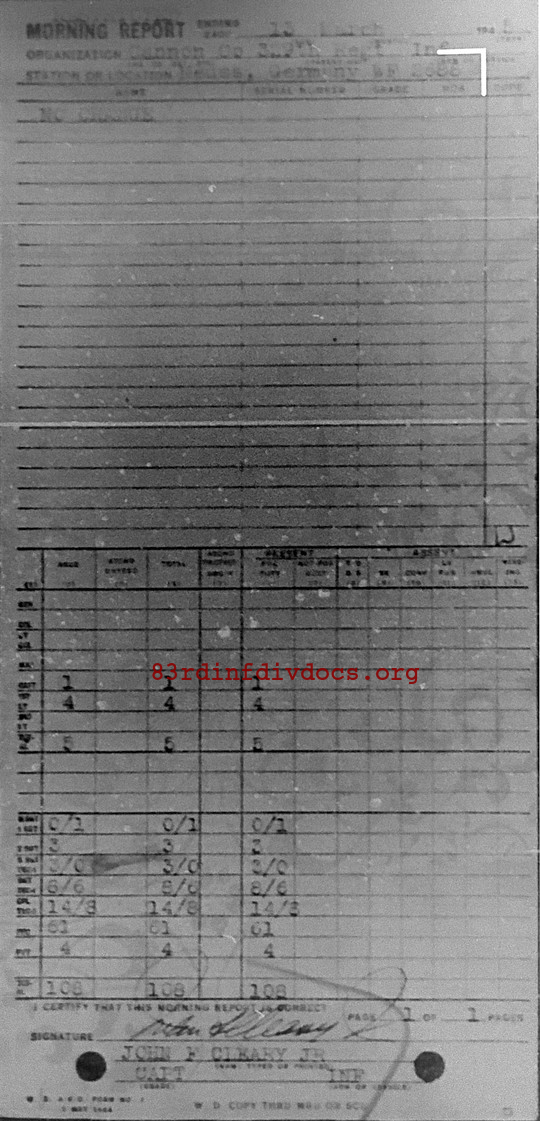 Morning report CANCO/329 for March 13, 1945