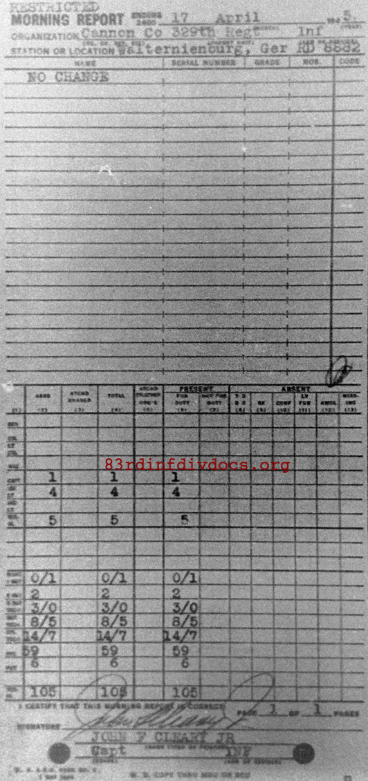 Morning report CANCO/329 for April 17, 1945