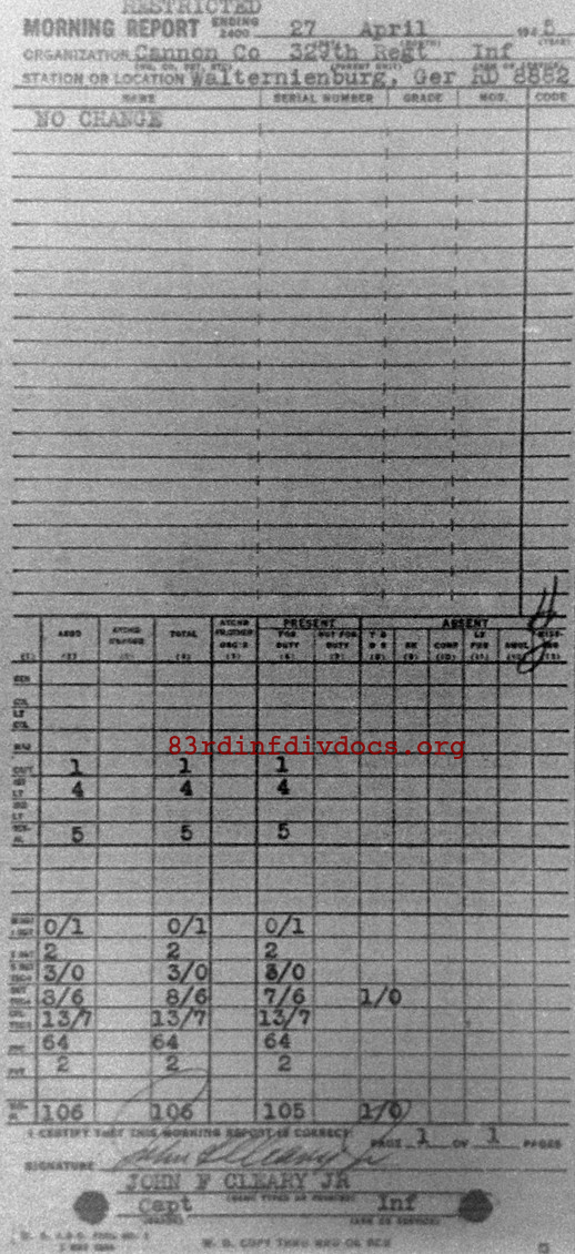 Morning report CANCO/329 for April 27, 1945