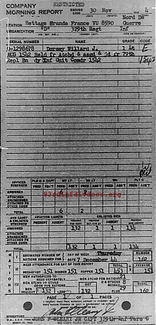Morning report D/329 for November 30, 1944