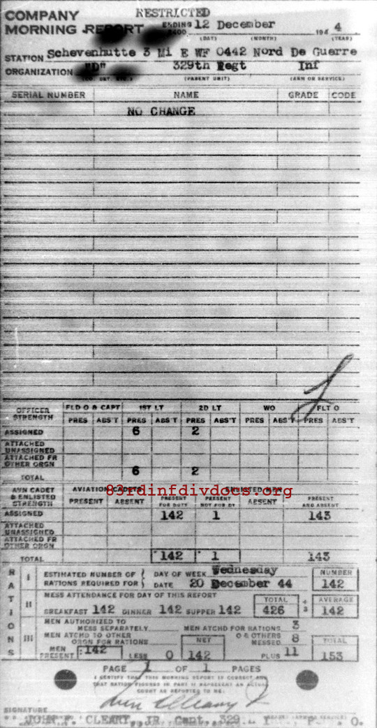 Morning report D/329 for December 12, 1944