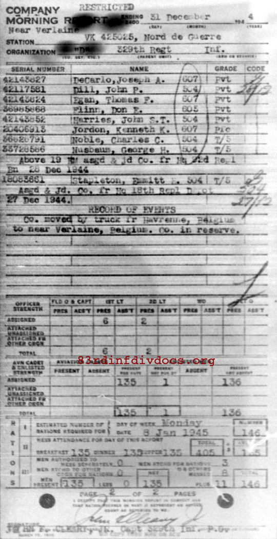 Co. moved by truck fr Havrenne, Belgium to near Verlaine, Belgium. Co. in reserve.