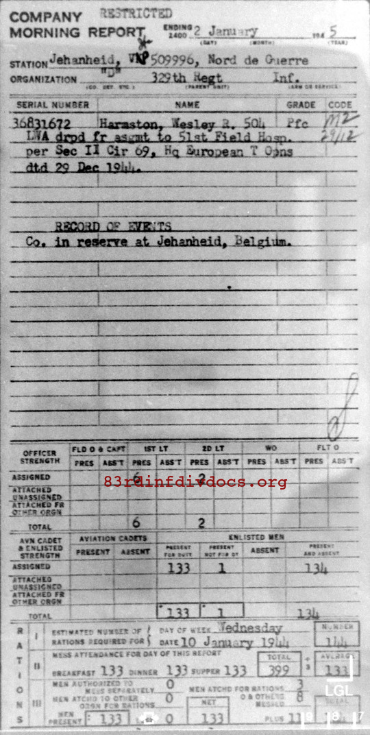 Morning report D/329 for January 2, 1945