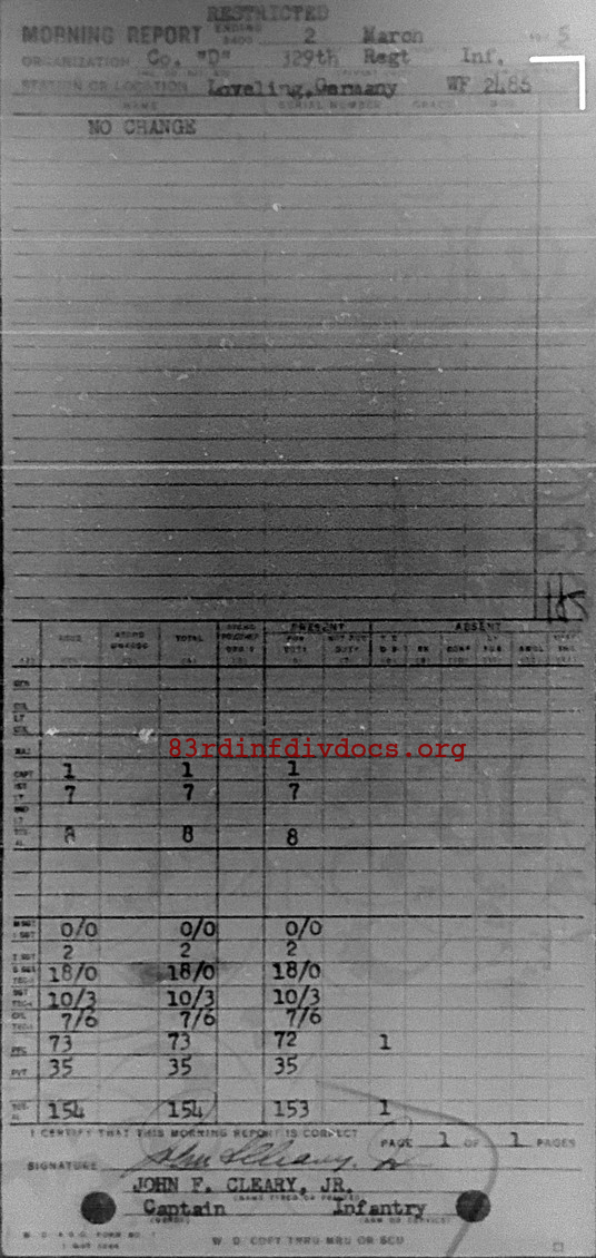 Morning report D/329 for March 2, 1945