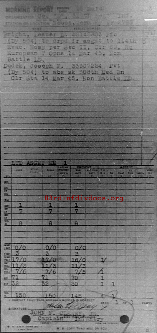 Morning report D/329 for March 15, 1945
