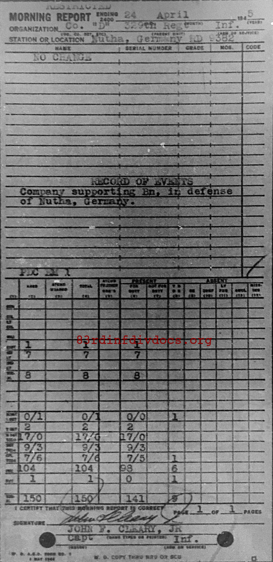 Morning report D/329 for April 24, 1945