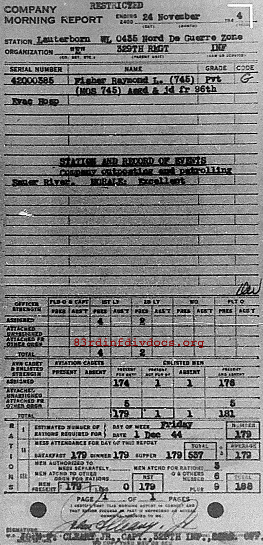 Morning report E/329 for November 24, 1944