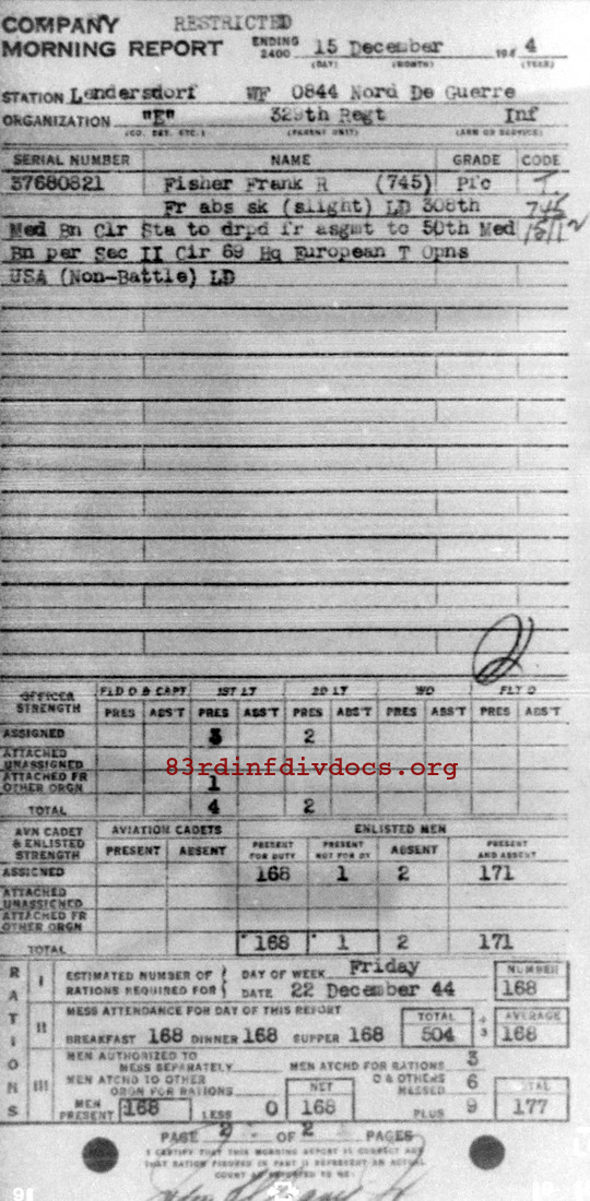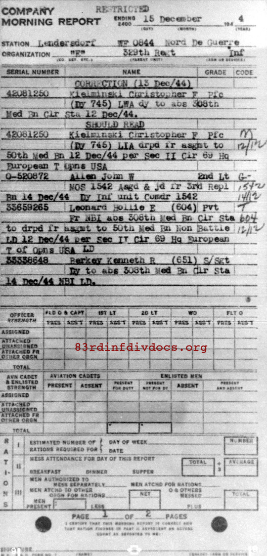 Morning report E/329 for December 15, 1944