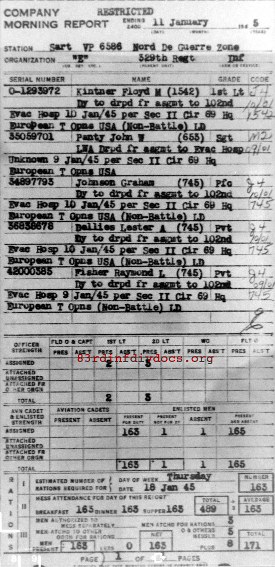 Morning report E/329 for January 11, 1945