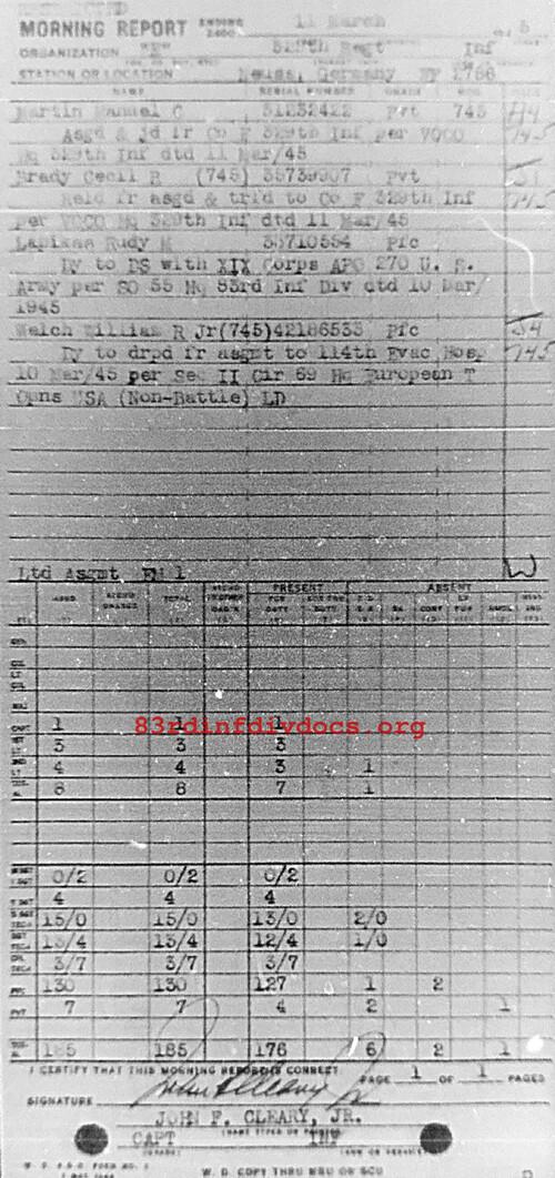 Morning report E/329 for March 11, 1945