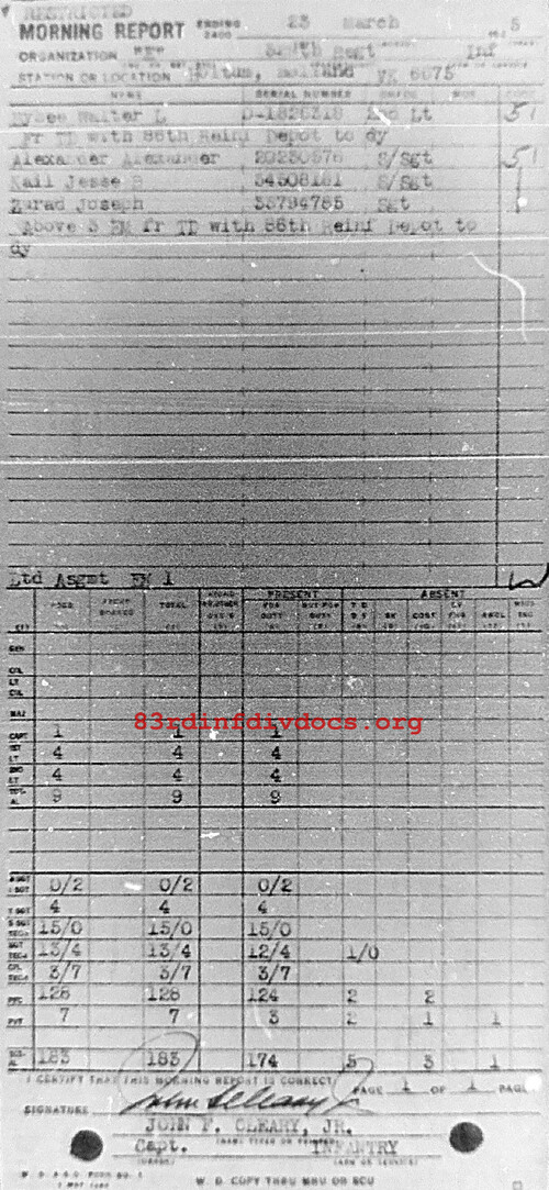 Morning report E/329 for March 23, 1945