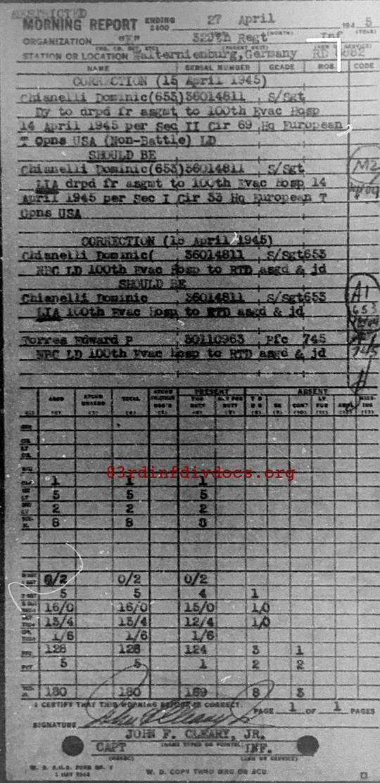Morning report E/329 for April 27, 1945