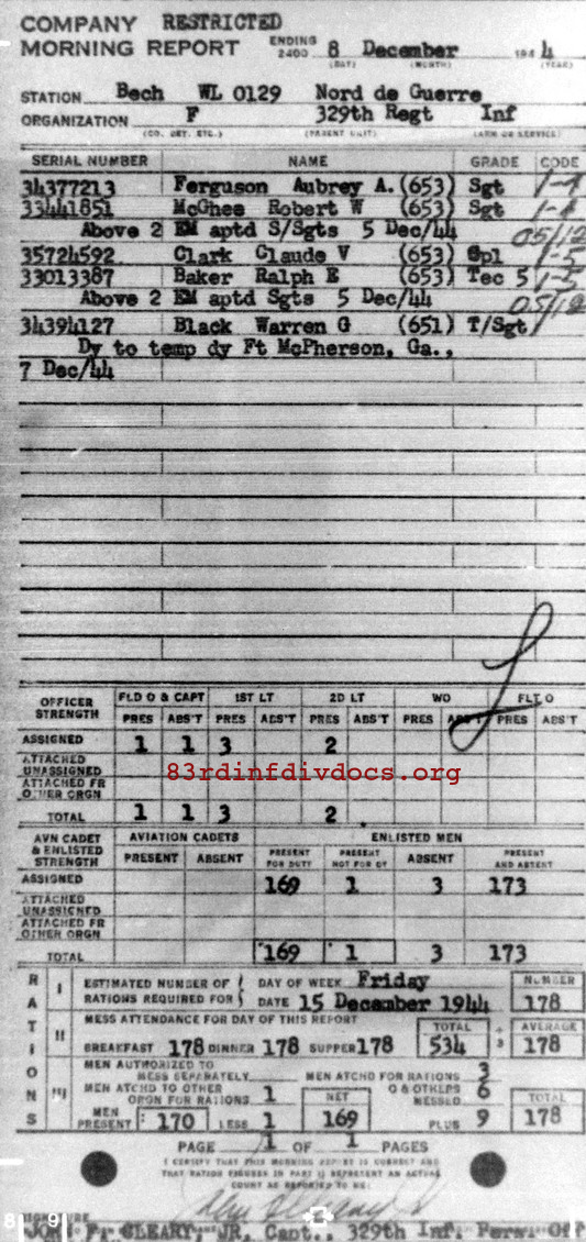 Morning report F/329 for December 8, 1944