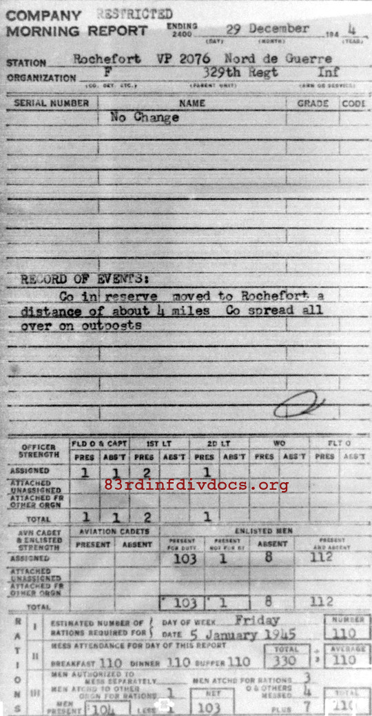 Co in reserve moved to Rochefort a distance of about 4 miles. Co spread all over outposts.