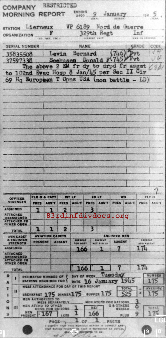 Morning report F/329 for January 9, 1945