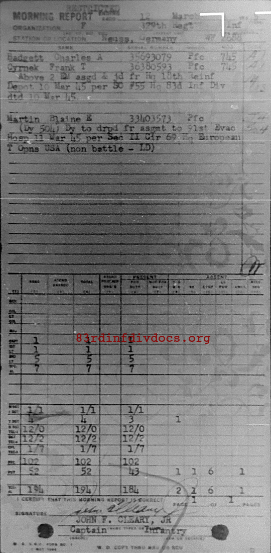 Morning report F/329 for March 12, 1945