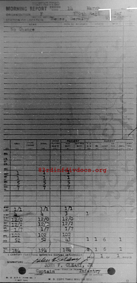 Morning report F/329 for March 14, 1945