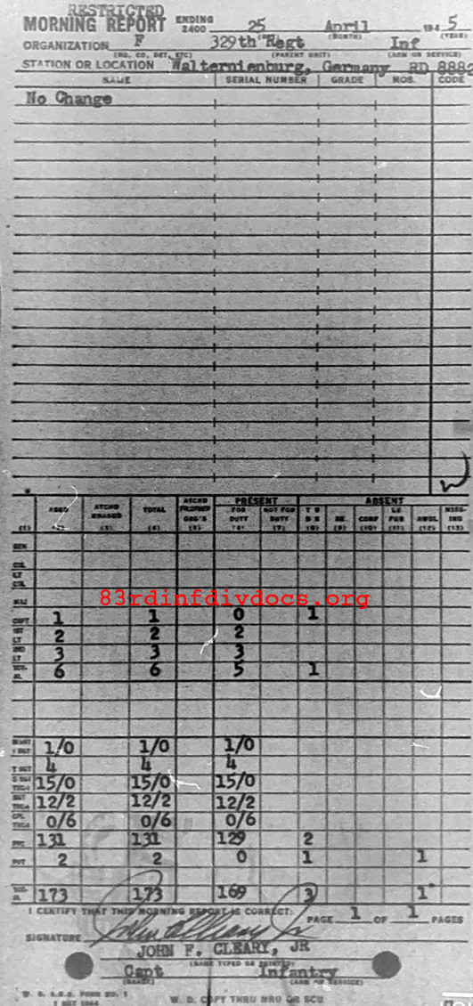 Morning report F/329 for April 25, 1945