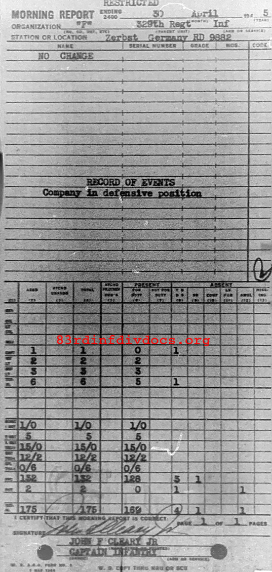 Morning report F/329 for April 30, 1945