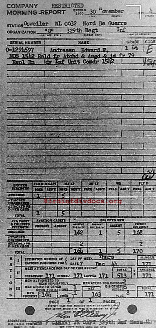 Morning report G/329 for November 30, 1944