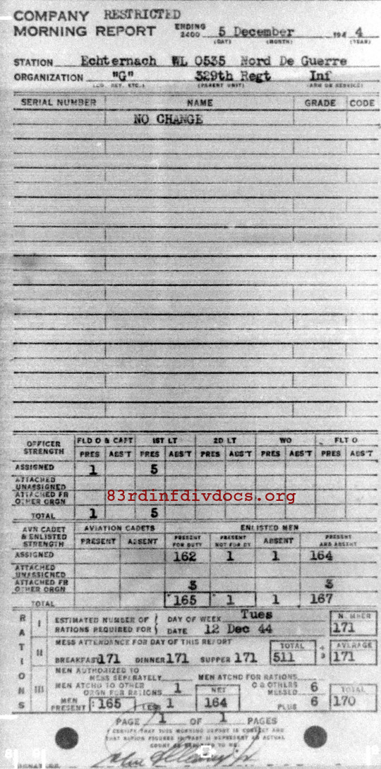 Morning report G/329 for December 5, 1944