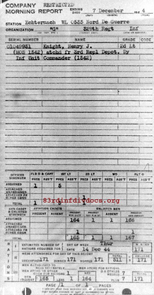 Morning report G/329 for December 7, 1944