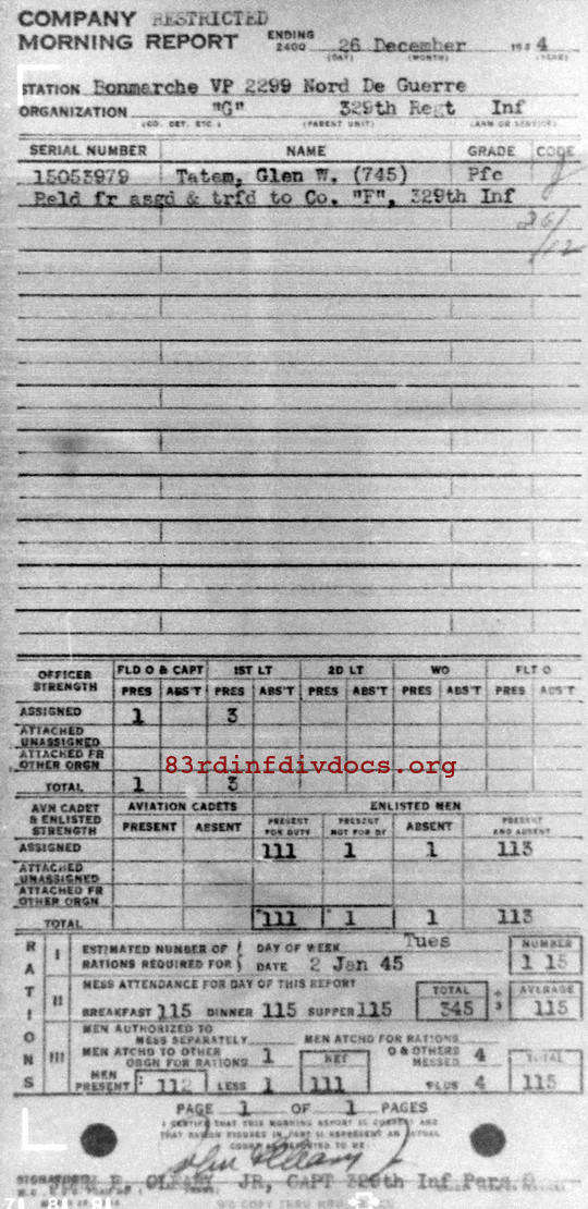 Morning report G/329 for December 26, 1944